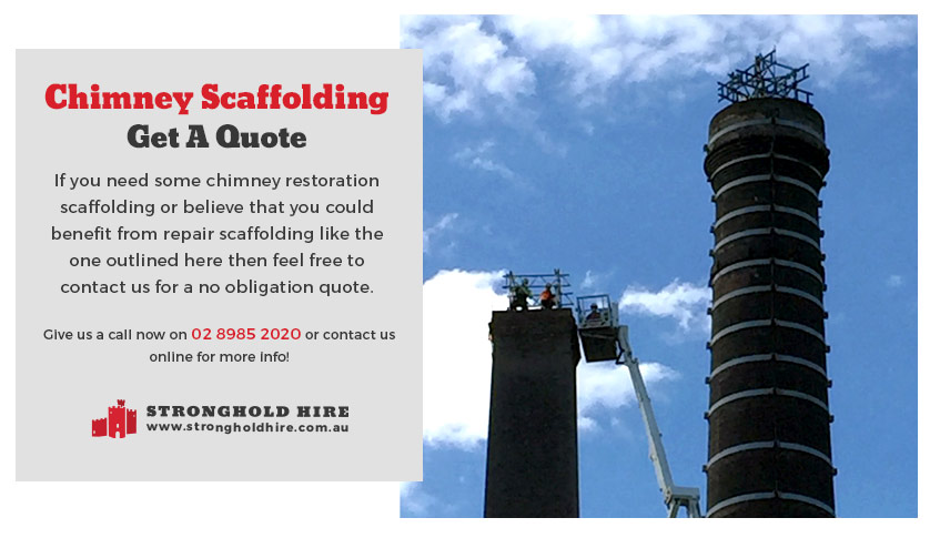 If you need some chimney restoration scaffolding or believe that you could benefit from repair scaffolding like the one outlined here then feel free to contact us for a no obligation quote. Give us a call now on 02 89852020 or contact us online for more info.