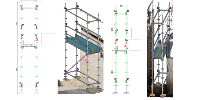 - 3D scaffold models showing how the scaffold interfaces with the building