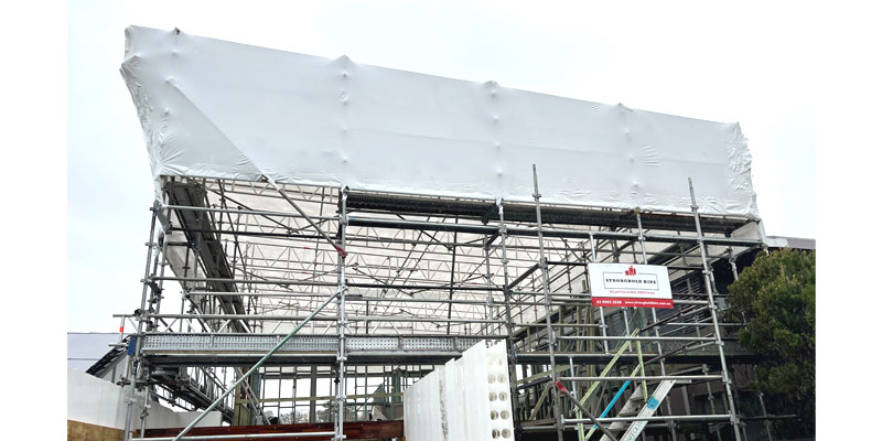 However, this client now has full control and does not have to worry about rain affecting their program any longer, the temporary scaffold roof is on, designed to give ample clearance to finish the roof and cladding.